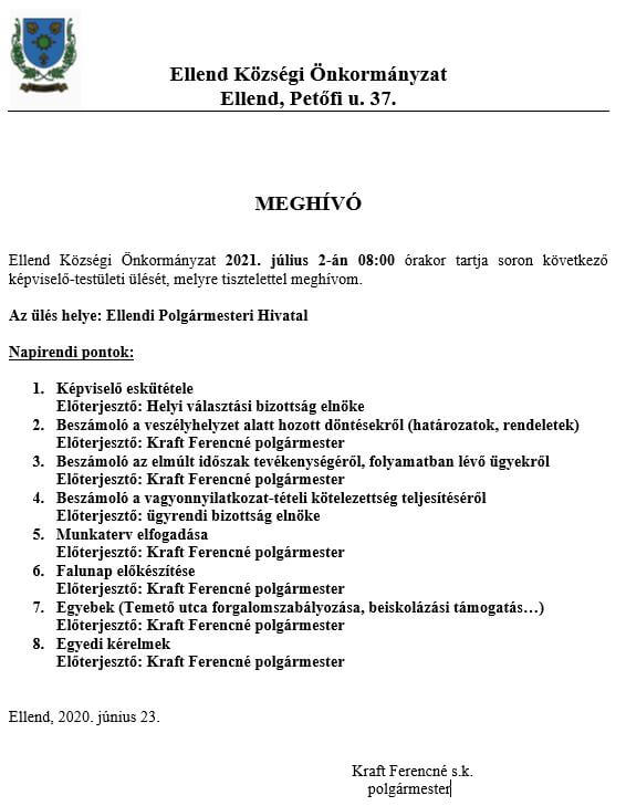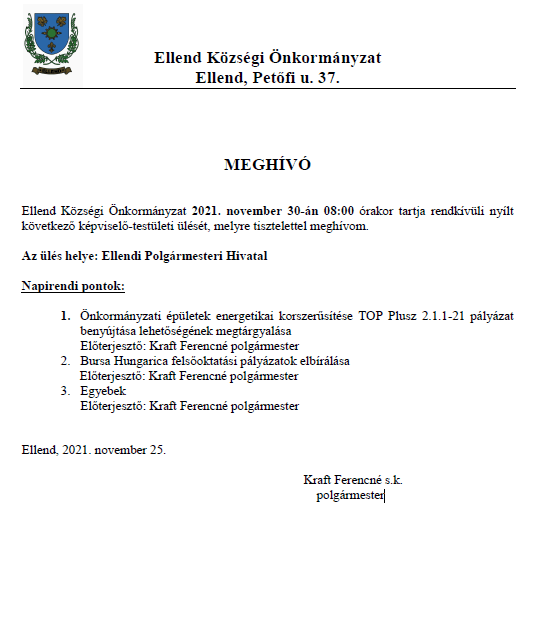 Meghívó nyílt képviselő-testületi ülésre